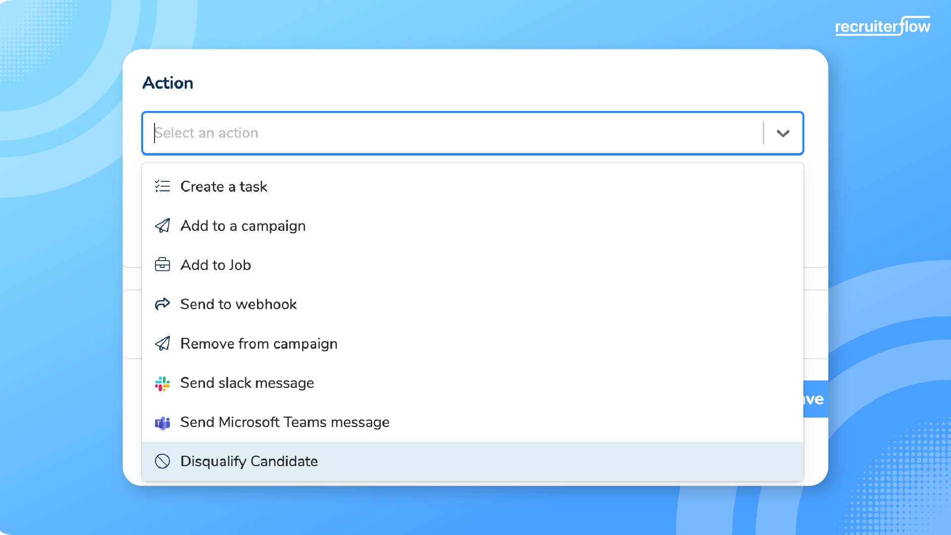 We have now added a ‘Disqualify Candidate’ action under Recipes to help you filter profiles that do not meet certain criteria. You can set an automated flow for this using any of the triggers available.