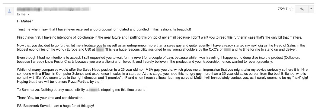This story starts in June last year. Pallav was looking to assemble a crew to propel Fusioncharts forward. A mutual friend introduced us because Pallav wanted to understand what he could do better. While I was in the meeting, I found myself being recruited and I agreed to take on the challenge. (I am still not sure if I would have said yes were I not in an inebriated state.) A month later I was sitting in Fusioncharts office looking at the challenge ahead.