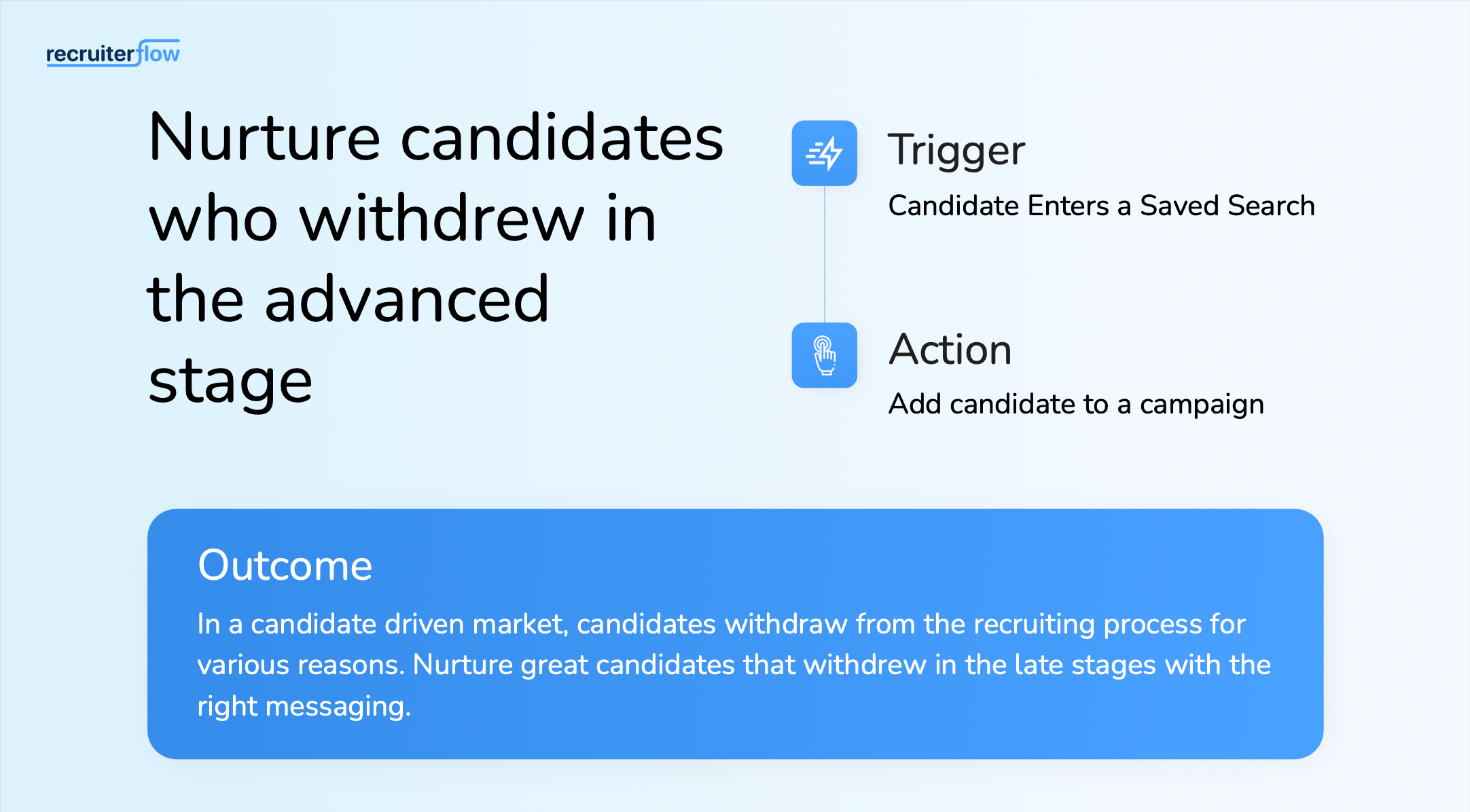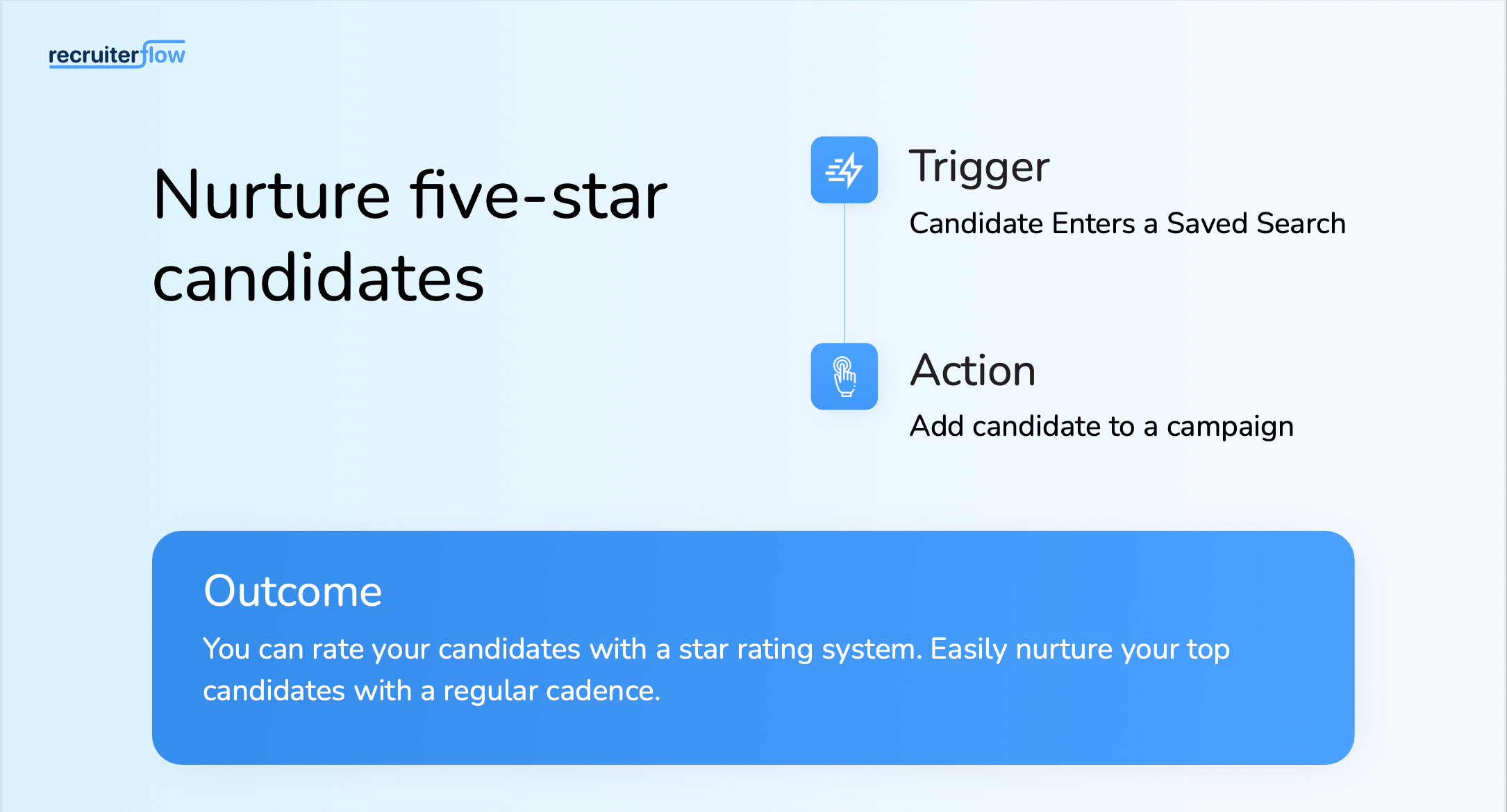 Recruitment tech can make your life so much easier here. Tech like Recruiterflow combines ATS, CRM automation and a centralized database to help you manage all your candidates, passive or active, in one place and nurture relationships with them.